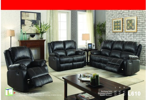 Contrast Stitch Black Reclining 2pc Set (Sofa+Love) Ti L610