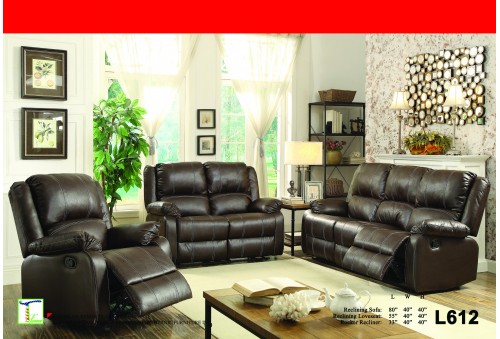 Contrast Stitch Brown Reclining 3pc Set (Sofa+Love+Recliner) Ti